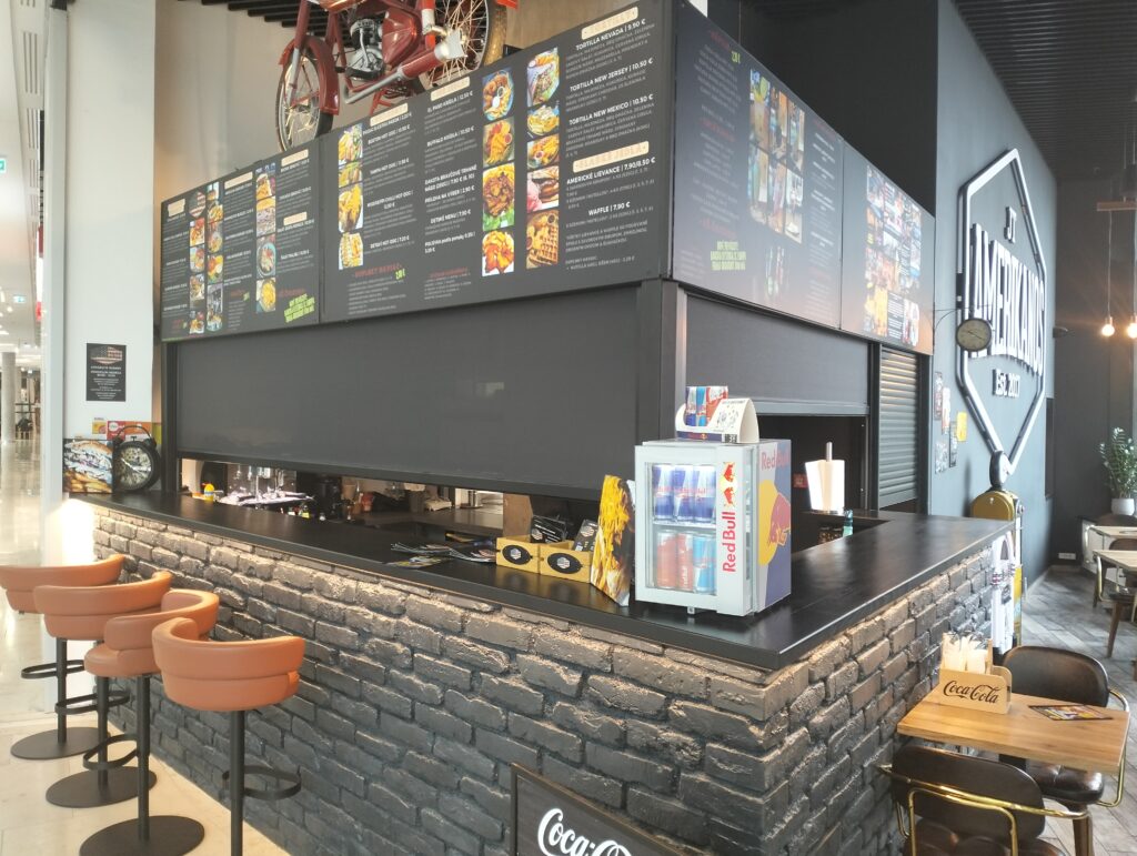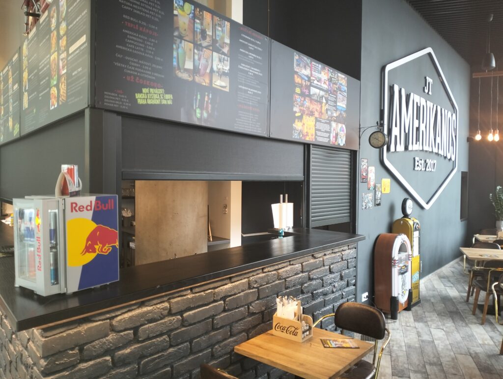 Boli sme prizvaní, aby sme navrhli a realizovali, prostredníctvom prvkov tieniacej techniky, optické aj fyzické oddelenie priestoru klienta a personálu v rovine barového pultu.