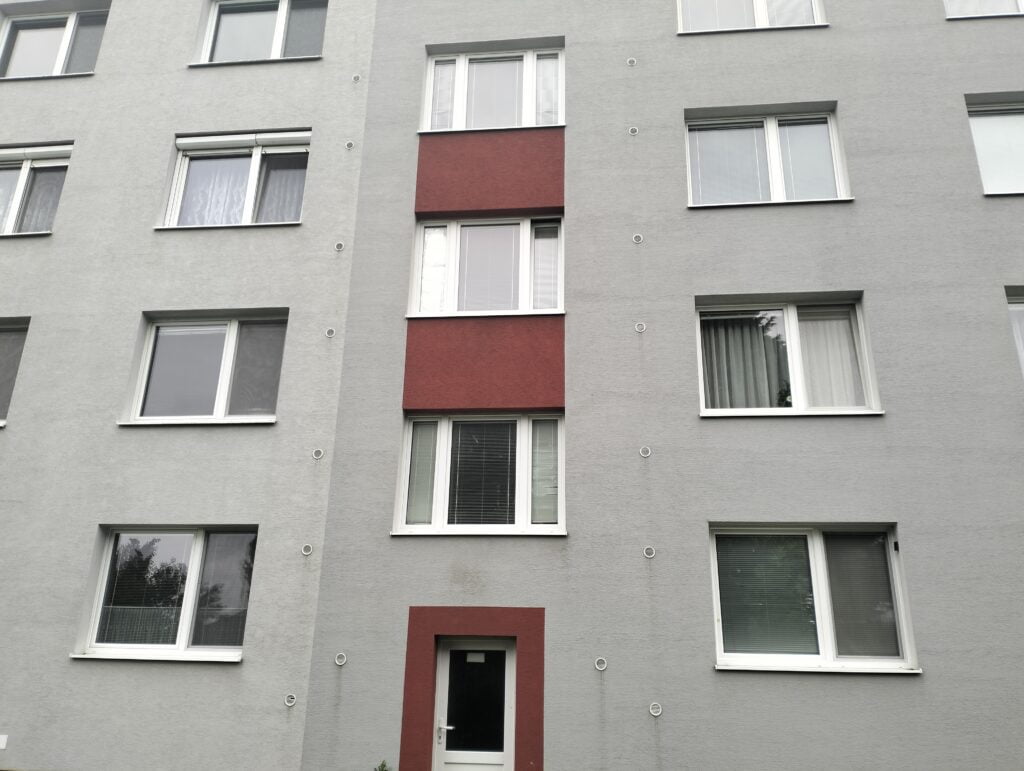 V prvej etape sme realizovali výmenu schodiskových troejdielnych okien zo zadnej časti / nad plastovými dverami.